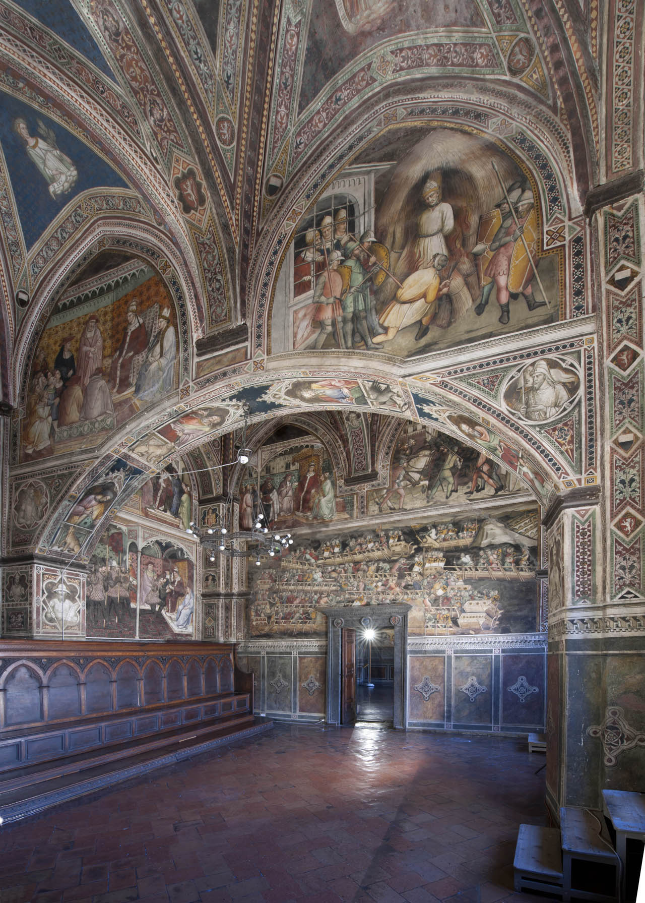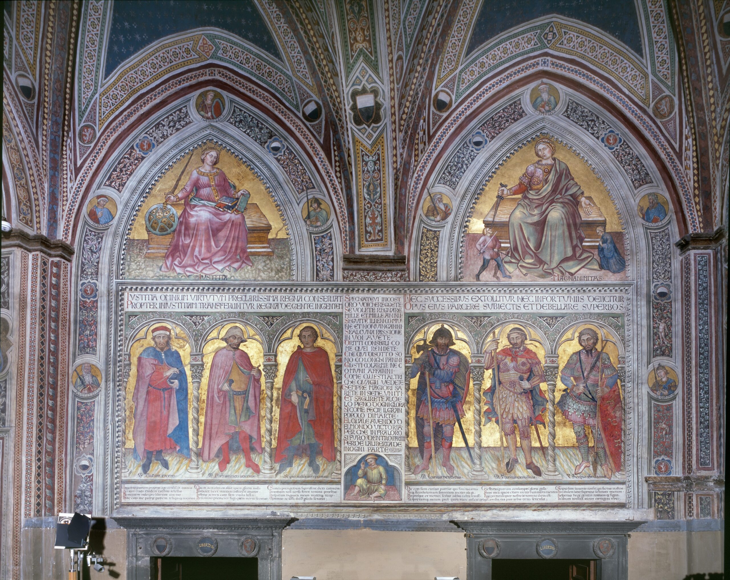 Al Governo dei Nove si deve l’assetto non solo della Piazza ma anche del Palazzo Pubblico, sede del Governo della città. Espressione di una rappresentanza del popolo per elezione non aristocratica, il Governo dei Nove fu un governo lungimirante. A loro si deve la sistemazione del Palazzo e la volontà di affidare all’arte il compito di narrare i principali obiettivi alla base di buon governo della città.