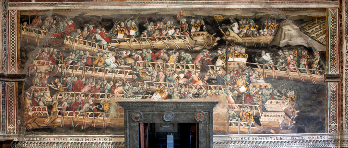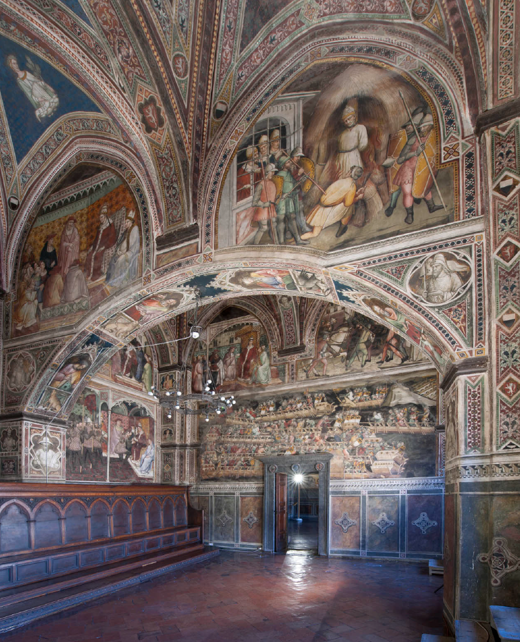 Al Governo dei Nove si deve l’assetto non solo della Piazza ma anche del Palazzo Pubblico, sede del Governo della città. Espressione di una rappresentanza del popolo per elezione non aristocratica, il Governo dei Nove fu un governo lungimirante. A loro si deve la sistemazione del Palazzo e la volontà di affidare all’arte il compito di narrare i principali obiettivi alla base di buon governo della città.